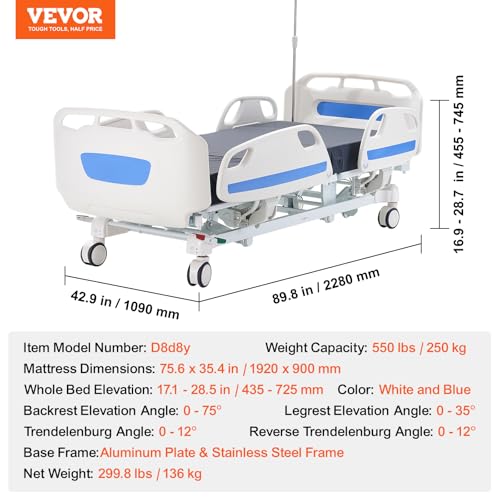 5 verbesserte Funktionen: Erleben Sie unvergleichlichen Komfort mit dem vollelektrischen Krankenhausbett von VEVOR mit 5 einstellbaren Funktionen. Passen Sie Ihre Position mühelos mit Trendelenburg- und Anti-Trendelenburg-Winkel (0°-12°), voller Betthöhe (17,1 – 28,5 Preis), Rückenlehnenwinkel (0° – 75°) und Beinposition (0° – 35°) an Ihre spezifischen Bedürfnisse an.