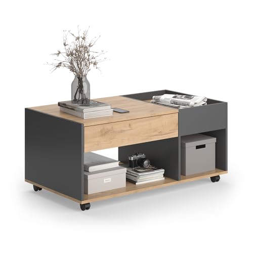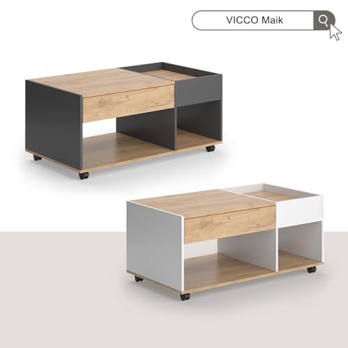 Vicco Couchtisch Maik, Goldkraft Eiche/Anthrazit, 110 x 60 cm mit Schublade