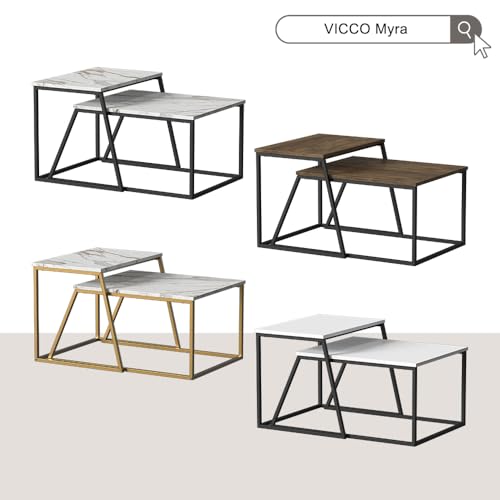 Vicco Couchtisch-Set Myra, Eiche rustikal/Schwarz, 60 x 50 cm 2 Teile