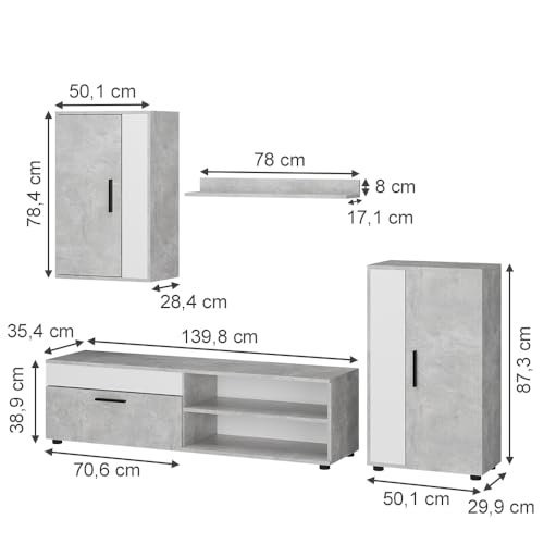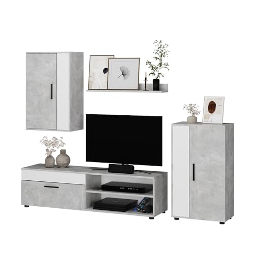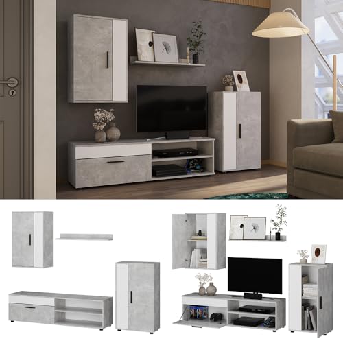 Vicco Wohnwand Berno, Beton/Weiß, Set, 4 Teile