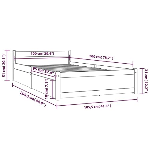 vidaXL Bett mit Schubladen Holzbett Massivholzbett Einzelbett Bettgestell Bettrahmen Schlafzimmerbett Schlafzimmermöbel Weiß 100x200cm