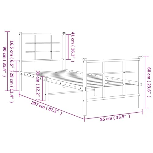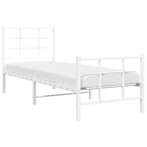 vidaXL Bettgestell Metall, Bett mit Kopfteil Fußteil, Bettrahmen mit viel Stauraum, Metallbett Gästebett Einzelbett, Weiß 80x200cm