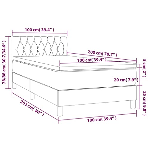 vidaXL Boxspringbett mit Matratze Bett Polsterbett Bettrahmen Bettgestell Lattenrost Einzelbett Hotelbett Schlafzimmerbett Dunkelgrau 100x200cm Samt