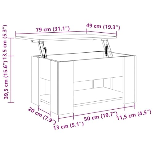 vidaXL Couchtisch Höhenverstellbar Kaffeetisch Beistelltisch Wohnzimmertisch Sofatisch mit Stauraum Sonoma-Eiche 79x49x41cm Holzwerkstoff