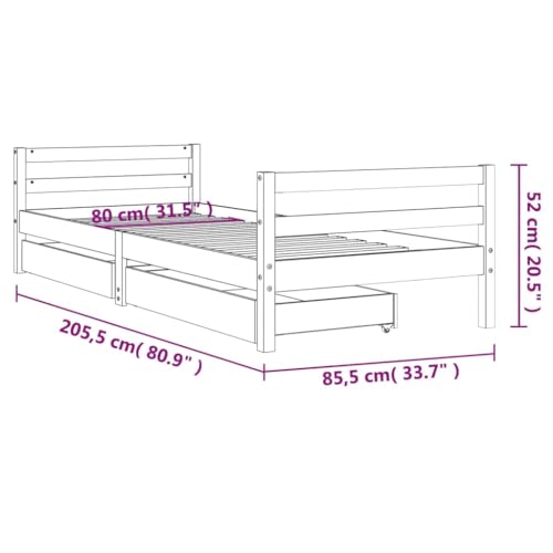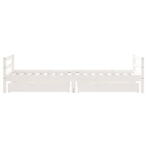 vidaXL Kinderbett, Kinder Bettgestell mit Schubladen, Hausbett für Kleinkinder ab 4 Jahren, Einzelbett Kinder Jugendbett Holzbett, Weiß 80×200 cm Massivholz Kiefer