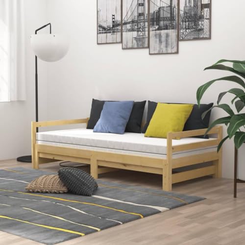vidaXL Massivholz Kiefer Tagesbett Ausziehbar Ausziehbett Bettsofa Sofa Bett Sofabett Schlafsofa Bettgestell Holzbett Gästebett 2X(90×200) cm, Braun