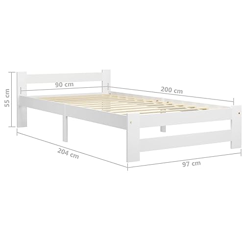 Aus massivem Kiefernholz gefertigt, ist dieses Bettgestell außerordentlich robust und langlebig. Die starken Latten Die Gesamtheit Sperrholz zeigen den nötigen Griff und Komfort. Das Bett ist zugunsten eine Matratze von 90 x 200 cm ausgelegt.