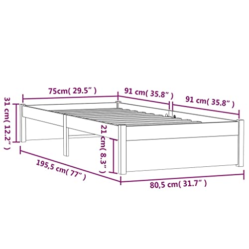 vidaXL Massivholzbett, Bett Holzbett für Schlafzimmer, Bettgestell Bettrahmen mit Lattenrost, Einzelbett Schlafzimmerbett, 75x190cm