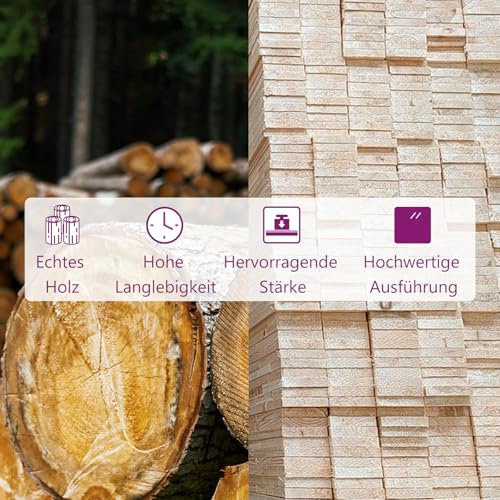 【Stabiler Bettrahmen:】 Der Holzrahmen sorgt für Robustheit und Stabilität. Die Latten umsorgen eine gute Gewichtsverteilung und stellen leistungsfähig, dass die Matratze bei jeder Drehung und Wendung deines Körpers zumal des Schlafs an ihrem Platz bleibt.