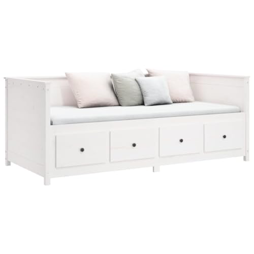 vidaXL Tagesbett Sofabett Gästebett Sofa Einzelbett Bettsofa Bett Bettgestell Schlafsofa Holzbett Bettrahmen Weiß 80x200cm Massivholz Kiefer