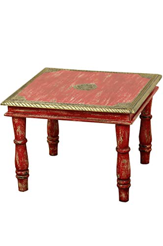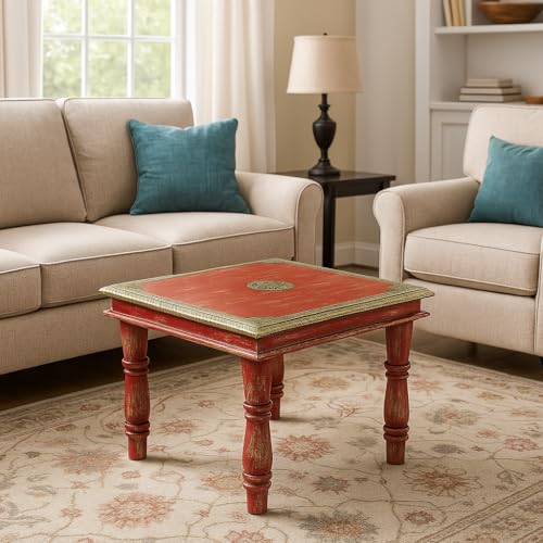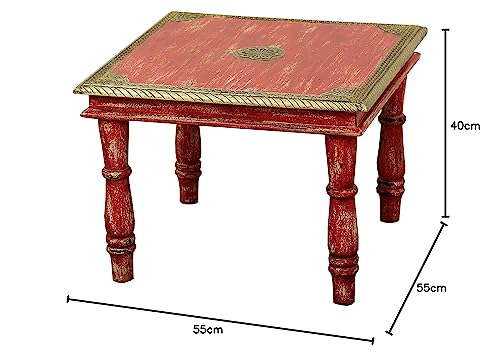 Der Couchtisch Anjay Rot ist ein eindrucksvolles Beispiel traditioneller indischer Handwerkskunst. Aus massivem Holz gefertigt und mit filigranen Messingverzierungen versehen, vereint er handwerkliche Exaktheit mit authentischem orientalischem Design.