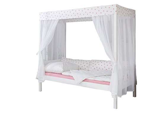 Vipack Himmelbett 140 x 200 cm, mit Lattenrost und Himmel Gestänge inkl. Textil Himmel, Farbe weiß Weiß