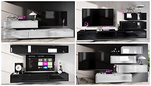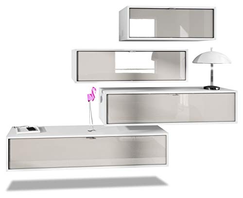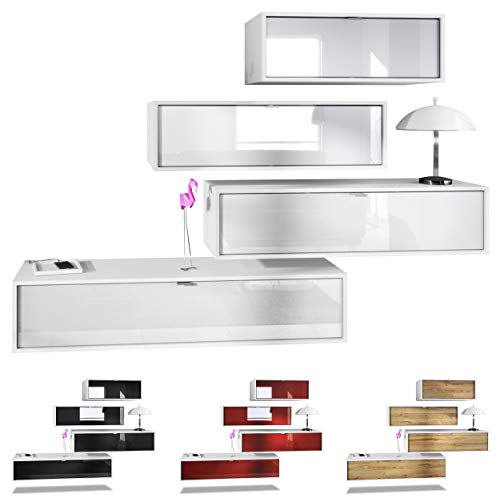 Die Wohnwand Lana V3 Die Wohnwand Lana V3 überzeugt sowohl durch ihr schlichtes und zeitloses Design als auch den großzügigen Stauraum im Inneren ihrer Wohnschränke. Die Wohnwand setzt sich nämlich zusammen aus vier geräumigen Lowboards in verschiedenen Längen: 80, 100, 120 und 140 cm. Die einzelnen Lowboards lassen sich nach Belieben nebeneinander anordnen, was dem Besitzer Massenhaft Spielraum für Kreativität lässt. Design der Wohnwand Der Korpus der verschiedenen TV Boards hat die Farbe Weiß matt. Um der Wohnwand einen futuristischen Stil zu verleihen, werden alle Teile hängend an der Wand befestigt. Dies ist gerade dann praktisch, wenn auf dem Boden nicht genügend Platz für stehende Möbel betriebsbereit ist. Der Zusammenbau der Wohnwand ist einfach: Die im Lieferumfang enthaltene detaillierte Aufbauanleitung führt Sie Abschnitt für Abschnitt durch die Montage. Maße der vier Lowboards (BxHxT): 80 / 100 / 120 / 140 x 29 x 37 cm Massenhaft mehr als eine statische Wohnwand Die Wohnwand Lana V3 bietet so Massenhaft mehr Flexibilität als andere Wohnwände: Die einzelnen Hängeelemente können derart abwechslungsreich an der Wand des Wohnzimmers angebracht werden, dass ein jeder seine eigene, individuelle Wohnwand bauen kann. Die zu sehenden Bilder und Varianten planen demgegenüber einen Bruchteil der Möglichkeiten, die dem Besitzer offenstehen. Auch dem Wunsch, die Wohnwand Lana V3 zukünftig durch zusätzliche Elemente zu erweitern, steht nichts im Wege: Die Wohnwand ist anpassbar erweiterbar und kann durch zusätzliche Lana Elemente ergänzt werden. Die Hängeelemente Lana 80, Lana 100, Lana 120 und Lana 140 lassen sich ganz einfach mit den bereits vorhandenen Elementen der Wohnwand schlussfolgern, um den bevorzugten Wohnstil zu verwirklichen. Der Kreativität sind hierbei keine Grenzen gesetzt!