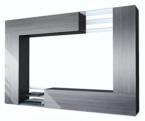 Lieferumfang: Enthalten sind die Wohnwand ohne LED-Beleuchtung, eine detaillierte bebilderte Anleitung und das notwendige Montagematerial. Schneller und einfacher Aufbau garantiert! Maße der TV-Wohnwand in cm (BxHxT): 262 x 183 x 39