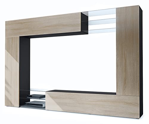Lieferumfang: Enthalten sind die Wohnwand ohne LED-Beleuchtung, eine detaillierte bebilderte Anleitung und das notwendige Montagematerial. Schneller und einfacher Aufbau garantiert! Maße der TV-Wohnwand in cm (BxHxT): 262 x 183 x 39