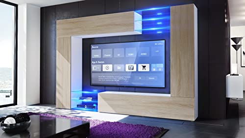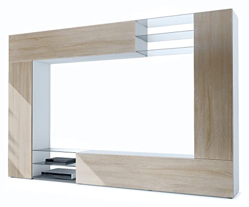 Lieferumfang: Enthalten sind die Wohnwand ohne LED-Beleuchtung, eine detaillierte bebilderte Anleitung und das notwendige Montagematerial. Schneller und einfacher Aufbau garantiert! Maße der TV-Wohnwand in cm (BxHxT): 262 x 183 x 39