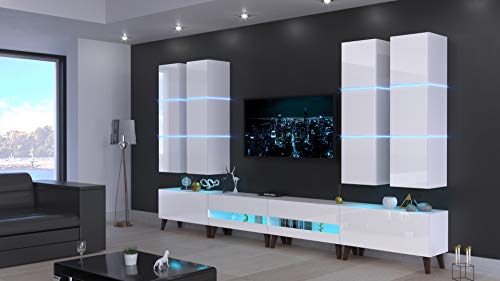 Design: Der Korpus der Schrankwand in Weiß matt und die Fronten in Weiß Hochglanz sehen nach ein modernes, wohnliches Ambiance. Oder stimmen Sie jeder vielen, weiteren Farbkombinationen das passende Design.