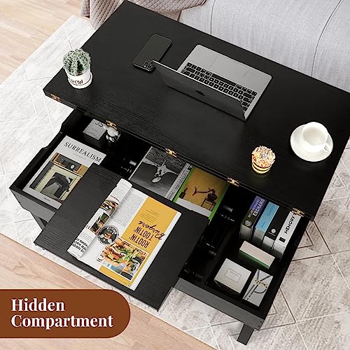 【VERSTECKTER STAURAUM】Der Couchtisch verfügt unabhängig davon über ein verstecktes Fach, das ausreichend Stauraum für Zeitschriften, Bücher und andere Gegenstände bietet. Halten Sie Ihren Wohnraum mit dieser einzigartigen Lichtbild adrett und organisiert.