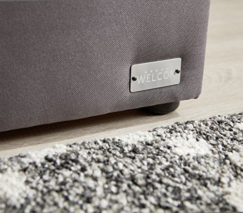 Boxspringbett „ROCKSTAR“ in Schwebeoptik mit 9cm Kaltschaumtopper und Designerkopfteil aus dem Hause Welcon in der Größe 180x200cm komplett mit Topper und 120cm hohem Kopfteil. Gönnen Sie sich den mit Herz und Seele höchsten Schlafkomfort mit unserem Boxspringbett „ROCKSTAR“ und das Gefühlsbewegung von purem Luxus. Dieses Bett kommt normalerweise in den besten Hotels der Welt zum Einsatz. Unsere hervorragend gepolsterten Boxspringbetten mit ihren wunderschönen Kopfteilen werden Ihr Schlafzimmer verschönern. Sie werden einen erholsamen Schlaf auf einem Spitzenprodukt aus der Premiumklasse erleben. Härtegrad H1, H2, H3, H5 oder H5, Taschenfederkern, Stoffbezug „Bahama“, „Lux“ oder „Prestige“, Kopfteil 180x120cm (andere Kopfteilhöhen für z.B. eine Abschrägung auf Nachfrage lieferbar), inkl. waschbarem Topper, Lieferumfang: 2 Basisgestelle mit Bettkasten und Stauraum, 1 Taschenfederkern-Matratze (H1, H2, H3, H4 und H5 rechts und links beliebig kombinierbar lieferbar), 1 Matratzenauflage (Topper) mit Kaltschaumschaumkern, 1 Kopfteil (180x120cm), Bettlänge: 200cm, Bettbreite: 180cm Warum bieten wir Ihnen ein Luxus-Boxspringbett so günstig an? Weil wir als reiner Versender und Hotelausstatter die hohen Geschmack geben für Ladenlokale in exklusiver Lage sowie die Geschmack geben für teures Verkaufspersonal einsparen. Diese Ersparnis geben wir an unsere Kunden weiter. Sie haben Fragen zu unseren Produkten oder benötigen eine Beratung? Rufen Sie uns an: 05121/779132