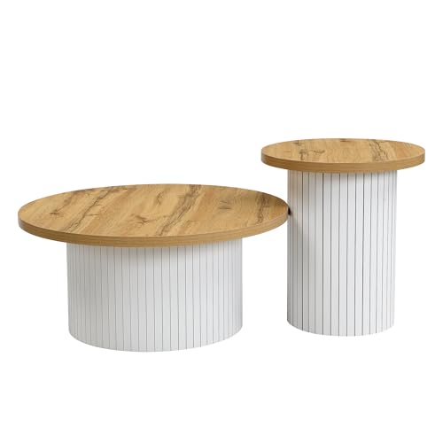 1.Ein runder Haupt- und ein zweiter runder Couchtisch, anpassbar flexibel an jedes Wohnzimmer.