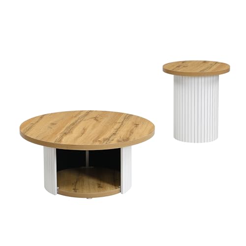 Vielseitige Nutzungsmöglichkeiten: Der Haupttisch lädt zum Entspannen ein und bietet Platz für Tee und Snacks. Der Beistelltisch eignet sich als Aufstapeln für verschiedene Bedürfnisse wie Lesen oder Blumenarrangements und eröffnet so vielfältige Nutzungsmöglichkeiten im Wohnzimmer.