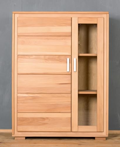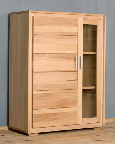 Wohnwand Genf Set I 4-teilig Kernbuche Massivholz geölt auch gewachst. Das Set besteht alle: Schrank Genf unter Zuhilfenahme von Schublade: Maße: B/H/T ca. 61 x 193 x 40 cm, TV Lowboard Genf: Maße: B/H/T ca. 112 x 49 x 45 cm, Halb-Vitrine Genf: Maße: B/H/T ca. 91 x 121 x 40 cm, Wandboard Genf: Maße: B/H/T ca. 112 x 18 x 20 cm. Top-modernes Design trifft auf natürliche Kernbuche. Die Möbelreihe Genf bietet diverse Möglichkeiten, Ihre Garderobe, Wohn- oder Essraum zu veranstalten. Die Möbel sind alle geölter/gewachster Kernbuche unter Zuhilfenahme von durchgehenden Lamellen gefertigt, keine billige Parketverleimung! Das verwendete Ölwachs ist frei von Formaldehyd / Schwermetallen auch ist also selbst anstelle die Oberflächenbehandlung von Kinderspielzeug qualifiziert, gemäß EN 71-3. Die Möbel können unter Zuhilfenahme von günstigeren Rollschubführungen oder unter Zuhilfenahme von hochwertigen Blum Auszügen unter Zuhilfenahme von Softclose bestellt werden, die Topfbänder sind immerdar unter Zuhilfenahme von Softclose Schließung ausgestattet.