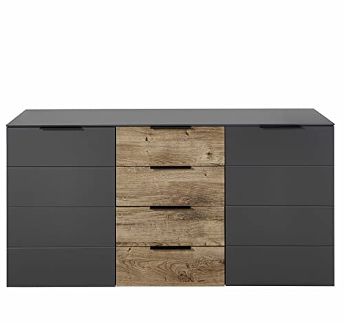 Wohnwand MEDIANA 1 in Graphit/Haveleiche Cognac Nb. Anbauwand Wohnzimmerschrank TV-Lowboard Fernsehschrank inkl. LED-Beleuchtung in verschiedenen Varianten (Wohnwand + Couchtisch + Sideboard)