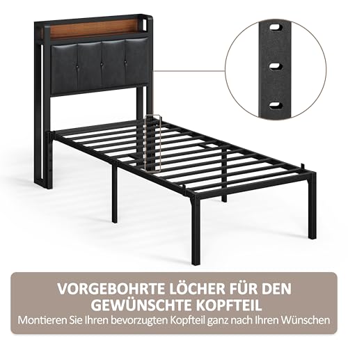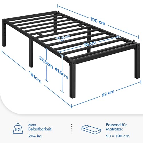 Yaheetech Bettrahmen 90 x 190 cm Metallbett Bettgestell aus Metall, Modern Jugendbett mit Lattenrost, Doppelbett Einzelbett Schwarz 41cm H