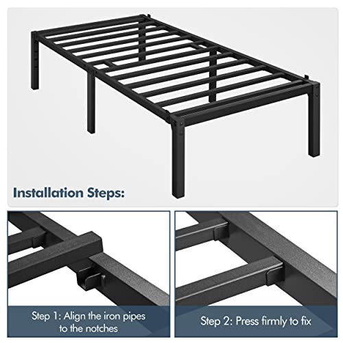 Erschütterungsfest & standfest – Dieses Metallbett besteht ganz dem robusten Metallrahmen, 12 stabilen Latten und 6 massiven Beinen. Mit einer Tragfähigkeit bis zu 160 kg eignet sich dieses Bettgestell sondern den täglichen Gebrauch.