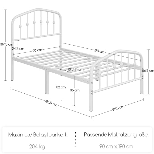 Einzelbett in Standardgröße: Mit der Größe von 196,5 cm L × 95,5 cm B × 107,5 cm H ist dieses Metallbett für eine Matratze von 190 cm L × 90 cm B geeignet. Darauf können Sie die Matratze mit Gedächtnisschaum, Latex oder Federkernmatratze legen