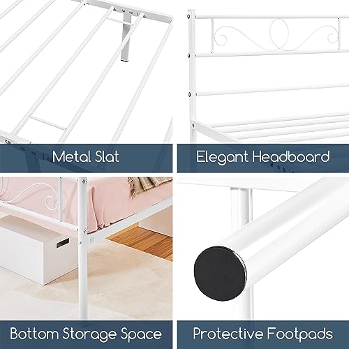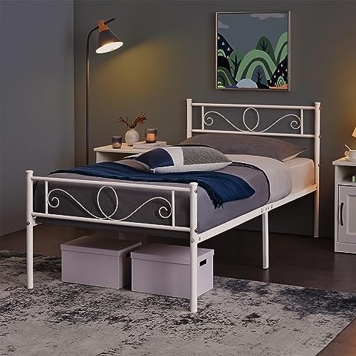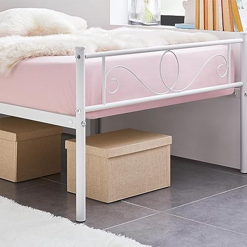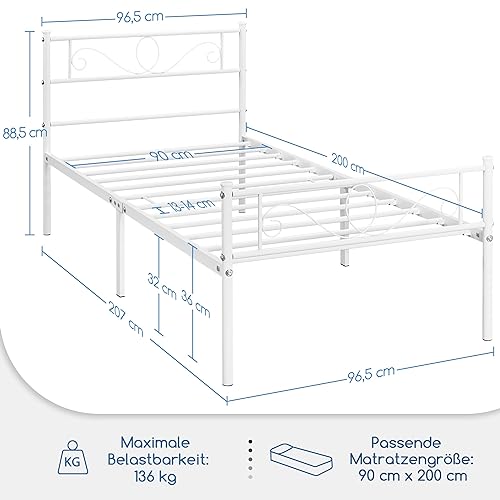 Yaheetech Bettrahmen 90 x 200 cm Metallbett mit Lattenrost Einzelbett/Doppelbett Gästebett Jugendbett mit Kopfteil für Schlafzimmer Gästezimmer Weiß
