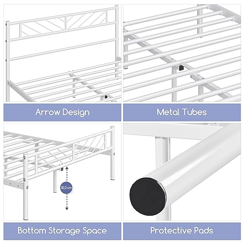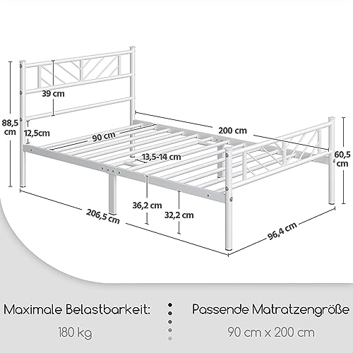 Yaheetech Metallbett 90 x 200 cm Minimalistischer Bettrahmen mit Kopfteil Gästebett mit Lattenrost für Schlafzimmer Gästezimmer 32cm Höhe unter dem Bett Weiß