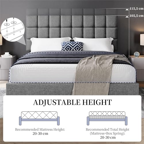 【Höhenverstellbares Kopfteil】Dieses Kopfteil verfügt über 2 Höhen: 105 cm und 115 cm. Diese Gestaltung ermöglicht es Ihnen, die passende Dicke der Matratze für Ihre Bedürfnisse zu wählen.