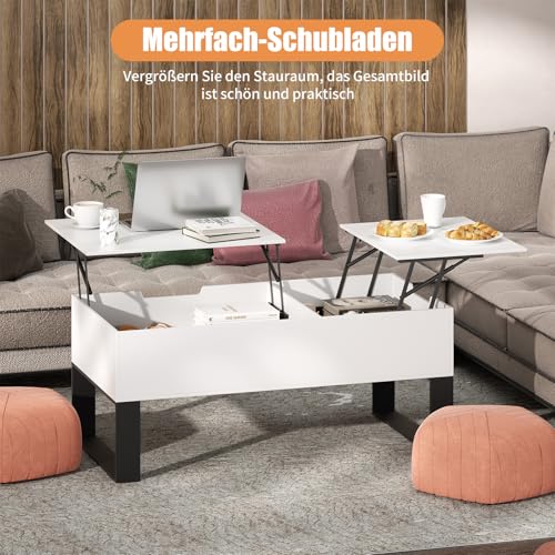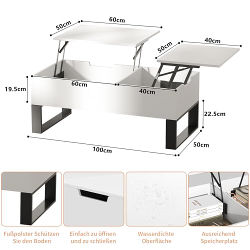【Platzsparend & Anpassbar】Mit den Maßen 100×50×42cm passt dieser Kaffeetisch perfekt neben die Couch, ins Schlafzimmer oder in kleine Wohnungen. Die Höhenverstellung macht ihn sonderlich platzsparend und vielseitig einsetzbar.