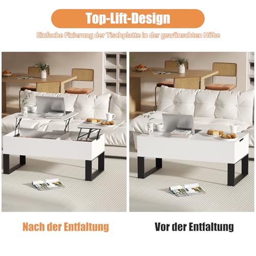【Geteiltes Höhenverstellbares Tischblatt】Mit seinem innovativen Design bietet dieser Couchtisch zwei losgelöst höhenverstellbare Tischflächen. So entstehen zwei separate Nutzungsbereiche – perfekt für Familien, die gleichzeitig buckeln, lernen oder essen möchten.