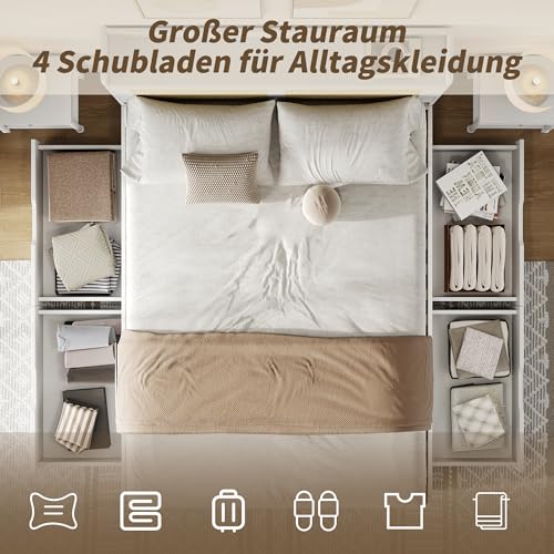 Geniusler Stauraum: 4 große Schubladen Einstellung mit Unordnung! Die 4 geräumigen Schubladen bieten reich Platz zugunsten Bettwäsche, Kleidung oder Schuhe und sind die perfekte Ablösung zugunsten jedes Schlafzimmer ohne ausreichend Stauraum