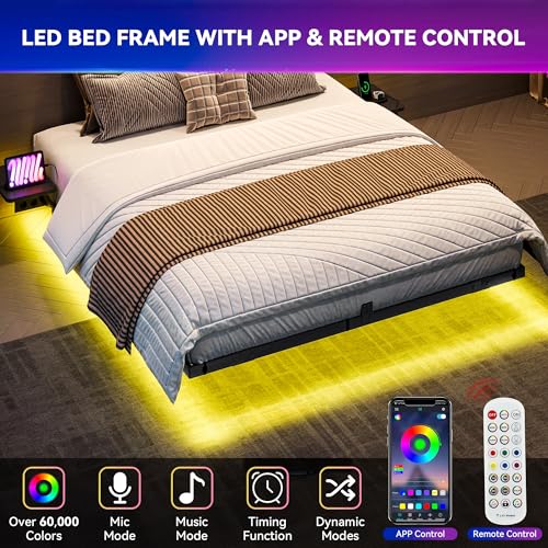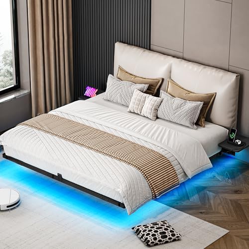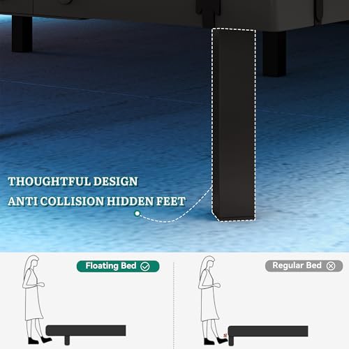 Schwebende Ausbreitung des Lichts :Versteckte Stützbeine umsorgen den einzigartigen Schwebeeffekt des Bettes. Kombiniert mithilfe indirekter 3-Seiten-Beleuchtung verleiht es Ihrem Schlafzimmer modernes Ambiance.