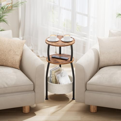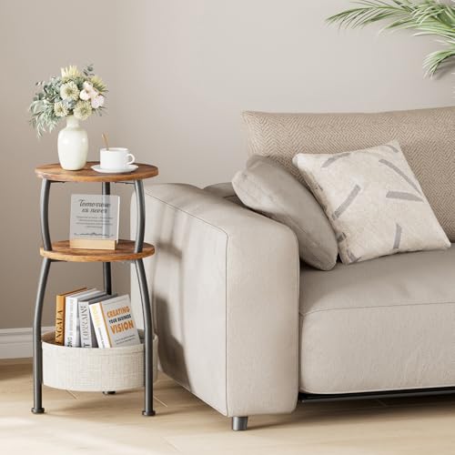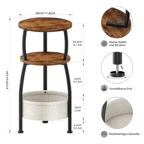 【Perfekt für kleine Plätze】Der 30 x 61 cm (Ø x H) Durchmesser und Höhe ist dieser Beistelltisch ideal für beengte Räume. Er verfügt über zwei Ablageebenen und eine integrierte, 30 x 10 cm (Ø x H) große Stofftasche, die alles griffbereit organisiert. Der dreistufige Aufbau mit textilem Staukorb maximiert die Praktikabilität und bietet Ihnen anpassungsfähig Platz für alle nötigen Dinge – jederzeit und überall.