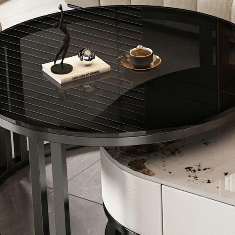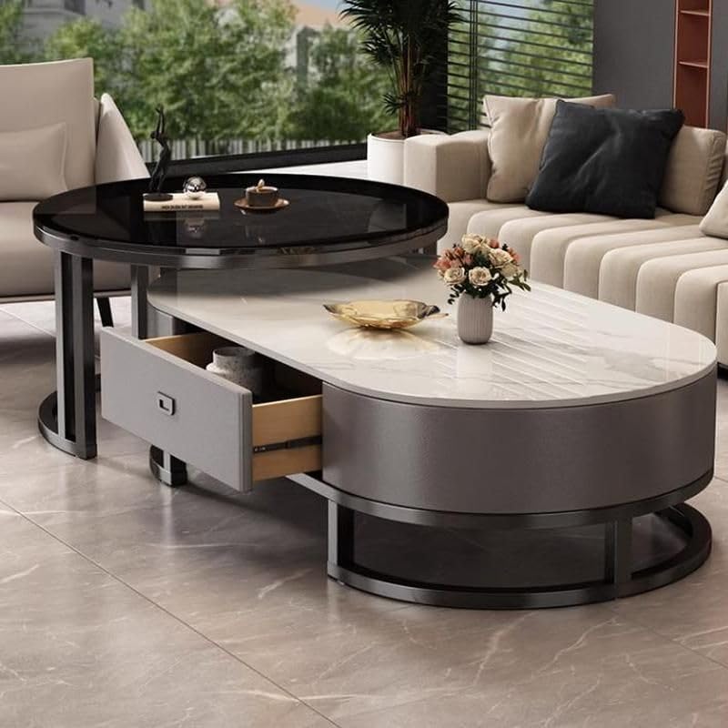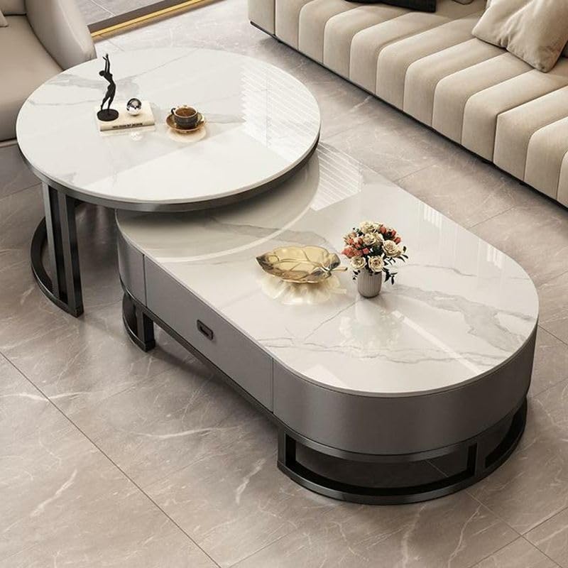 【Grade und stilvoll】 Ein ovaler Steintisch mit einem runden Glastisch, modisch und gut aussehend. Votieren Sie die passende Farbe für Ihren Weltraum.