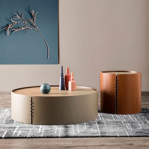 Zylindrischer Couchtisch aus Leder ohne Beine, für Zuhause, Wohnzimmer, minimalistisch, niedriger Tisch, Teetisch, Beistelltisch, Beistelltisch, Möbel
