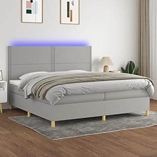 Boxspringbett, Bettstütze Betten Bettgestell Seniorenbett Geeignet für Hotel Aufenthaltsraum Schlafzimmer Gästezimmer mit Matratze & LED Hellgrau 200×200 cm Stoff