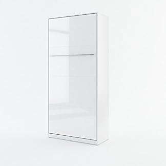 BIM Furniture Wandbett Vertical Schrankbett Concept PRO Wandklappbett, Schrankklappbett Wandbett, Schrank mit integriertem Klappbett, Funktionsbett (Weiß Hochglanz, 90 x 200 cm)