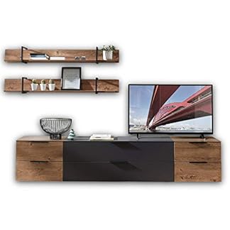 Lomadox Industrial TV-Wohnwand in Haveleiche Cognac Dekor mit Graphit inkl. LED-Unterbaubeleuchtung
