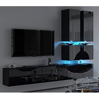 1095,18 €Produkt kaufenlukmebel Wohnwand BETA Weiß Hochglanz Schrankwand Anbauwand Mediawand TV-Schrank mit LED-Beleuchtung Wohnzimmerschrank Wohnzimmer (Schwarz Hochglanz)