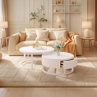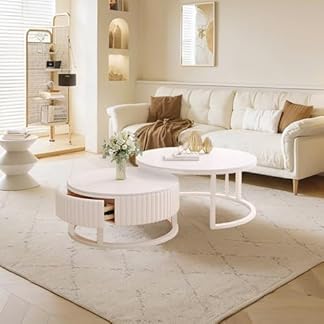 2012,91 €Produkt kaufenMOOWI Kaffee-Endtisch Moderner runder Couchtisch 2er-Set for Wohnzimmer, runder Couchtisch mit einzigartiger Platte und Schublade, großer und Kleiner Mitteltisch und Beistelltisch-Sets Beistelltisch