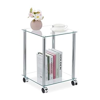 26,99 €Produkt kaufenRelaxdays Beistelltisch mit Rollen, 2 Ablagen, eckig, Wohnzimmer, Glas & Stahl, mobiler Couchtisch, transparent/silber