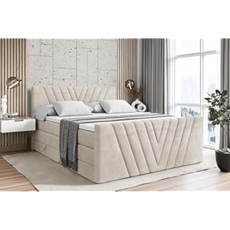 1049,90 €Produkt kaufenALTDECOR Boxspringbett mit Matratze und Lattenrost, Topper, Fußteil, Polsterbett mit Bettkasten, Bett mit Stauraum H3- und H4- Matratze,Springboxbett – VIONE-Z King – 180×200 – Beige Samt