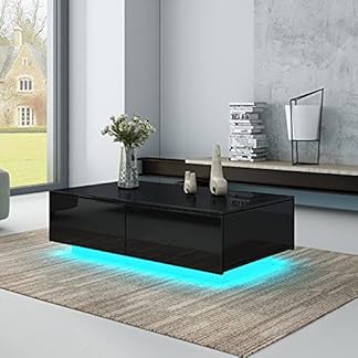 1972,33 €Produkt kaufenSenvoziii LED Couchtisch für Wohnzimmer, Moderner Beistelltisch aus Holz, Schwarzer Hochglanz Kaffee Tee Tisch mit 4 Schubladen zur Aufbewahrung für Home Office Möbel