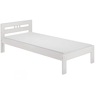 Erst-Holz® Massivholzbett Kiefer weiß Einzelbett 100×200 Jugendbett Futonbett Gästebett Matratze 60.64-10 W M