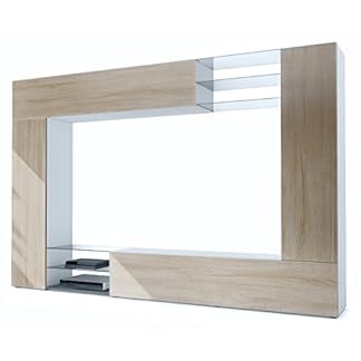719,00 €Produkt kaufenVladon Wohnwand Mirage, Made in Germany, Anbauwand mit Rückwand mit 2 Türen, 2 Klappen und 6 offenen Glasablagen, Weiß matt/Eiche sägerau (262 x 183 x 39 cm)